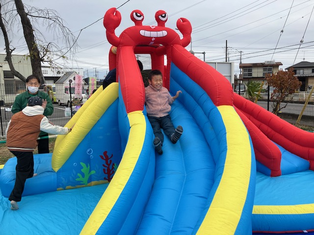 子どもさんにとにかく大人気の「エアースライダー」。今年も登場です!キッズコーナーも整いました。