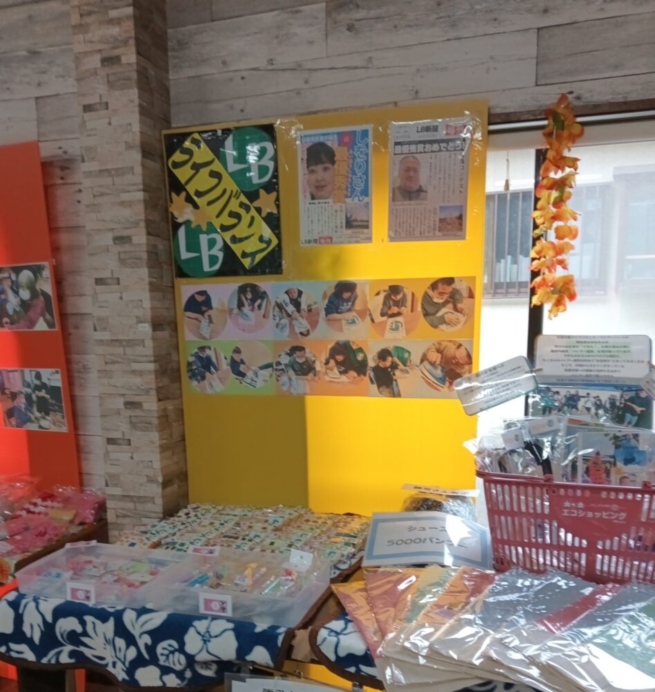 会場内はハワイ風となっており、フリードリンク。客席は30席あり広々としています。また、こちらの会場には、各事業所ご利用の皆さまが制作されたものを販売しました。。さらに、ゆったりとドリンクを飲みながら、各事業所の紹介動画を上映させていただきました。動画はそれぞれの事業所が独自に製作し、ご利用の様子、事業所の特徴、スタッフの想いなどなど、それぞれの事業所が趣向を凝らしておりました。ご来場のご希望のかたには動画のデータをプレゼントという特典もあり、ご好評いただきました。